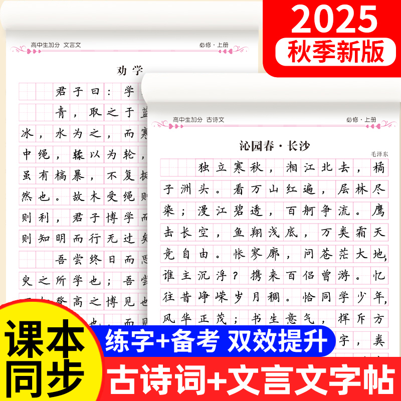 高中语文必备古诗文72篇古诗词和文言文字帖高考必背衡水体古代文化常识考试型满分语文字帖新高一二三高中生专用练字帖英语字帖