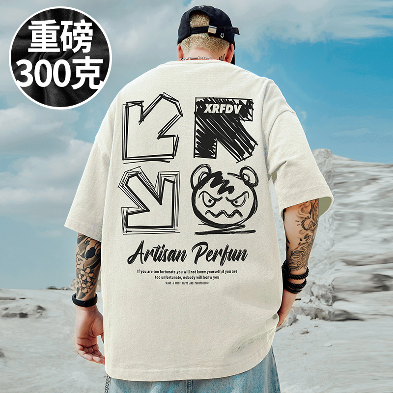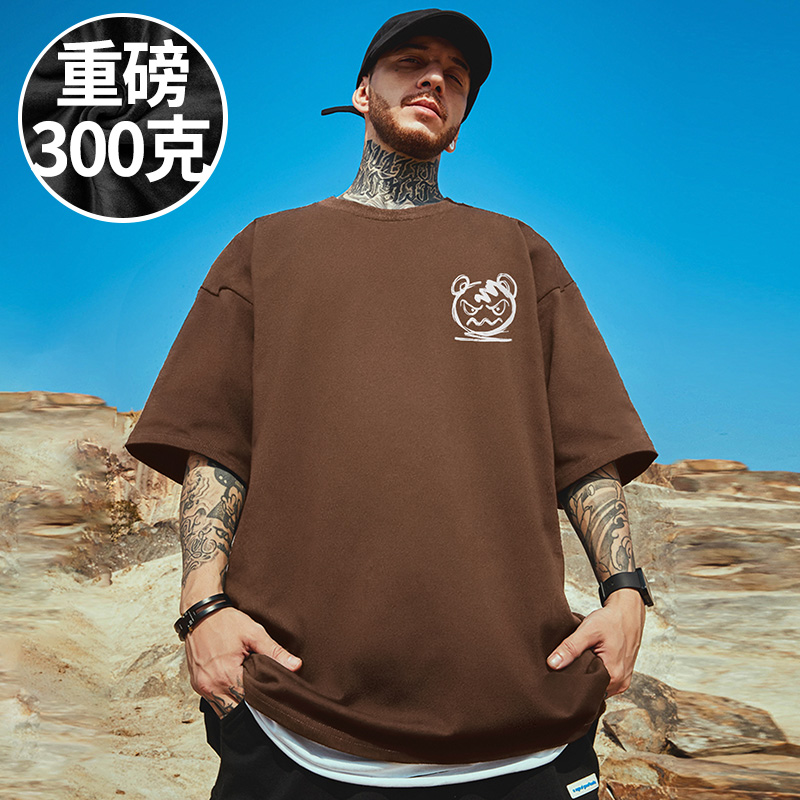 复古T恤短袖 夏季 加肥加大码 半截袖 男装 100%纯棉港风潮牌宽松美式