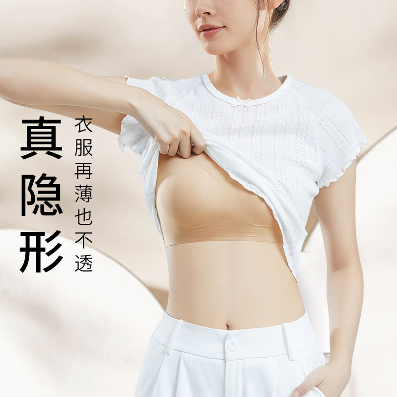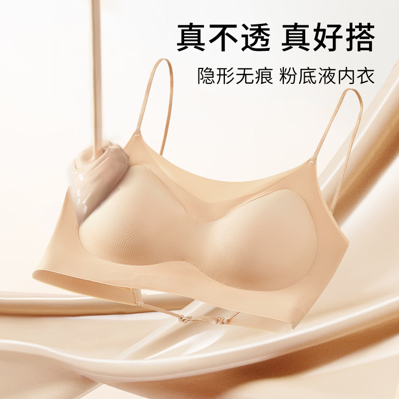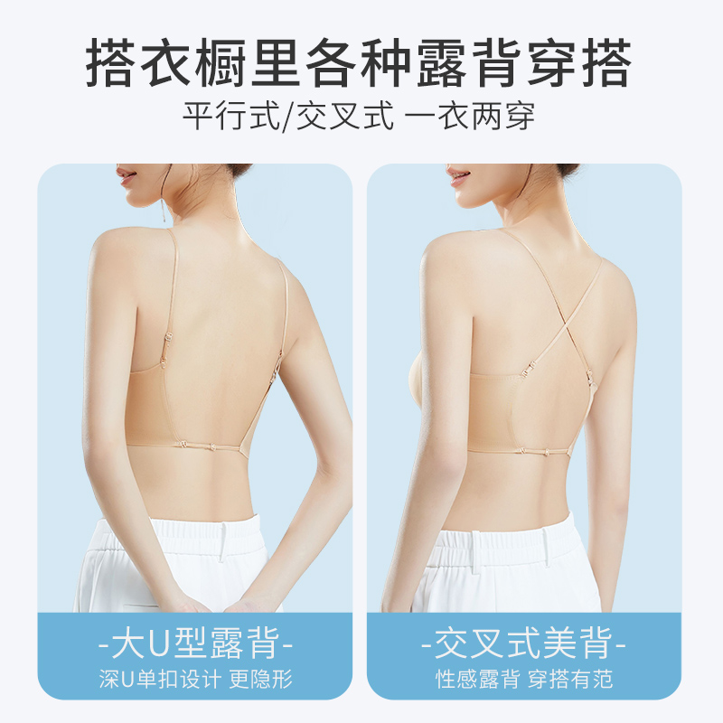 粉底液美背内衣女夏超薄款 冰丝细肩带大露背防走光隐形抹胸文胸