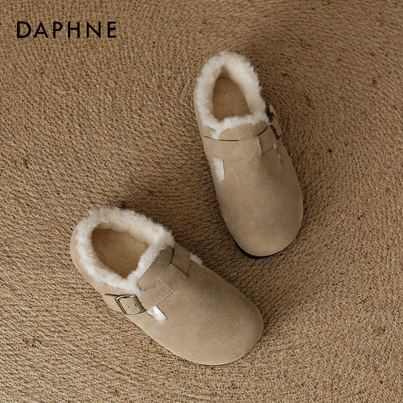 雪地棉鞋 加绒加厚孕妇一脚蹬单鞋 女2025秋冬新款 达芙妮全包勃肯鞋