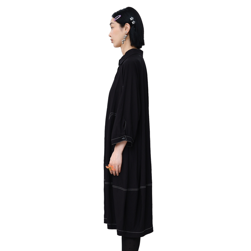 MOVEUP幻走2025春季 .FUN系列大贴袋撞色线设计师梭织连衣裙 新款