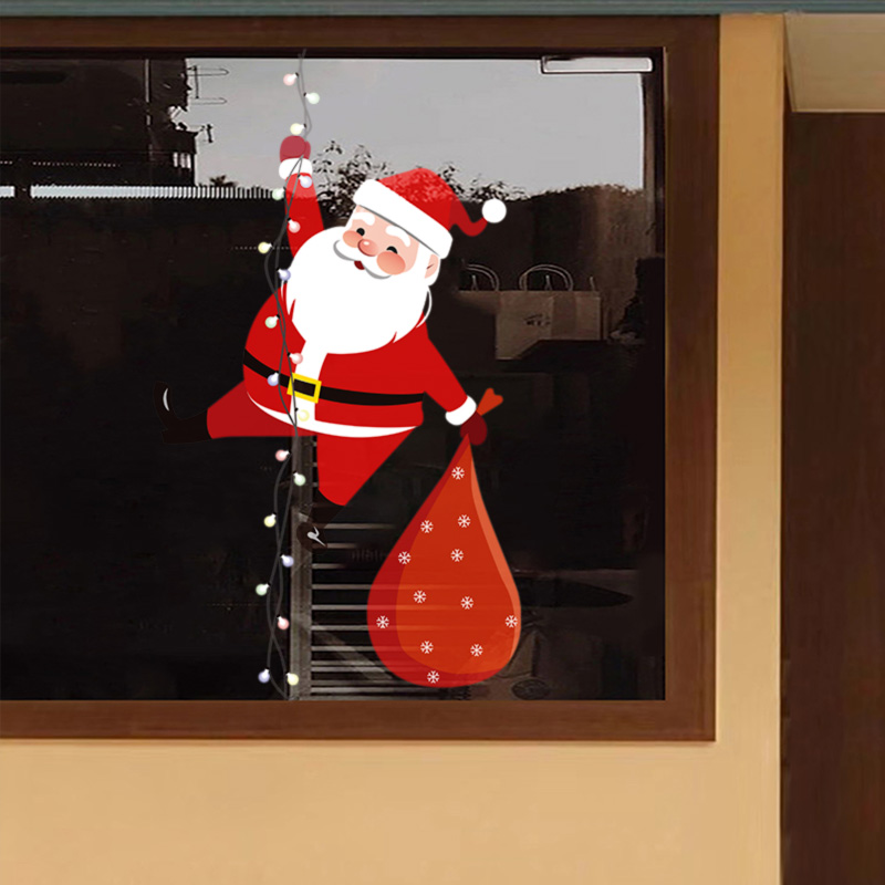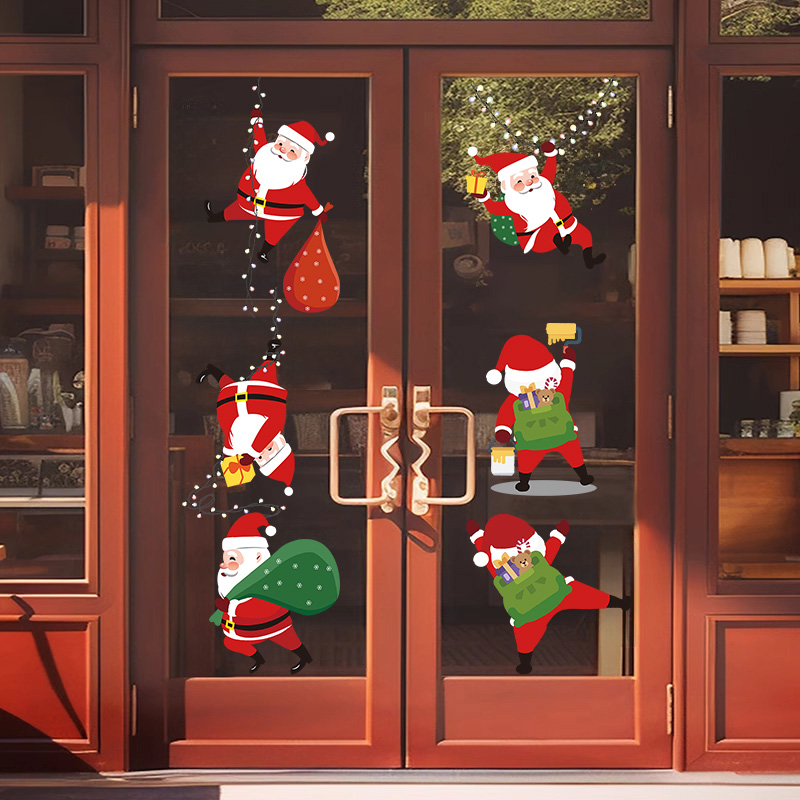 圣诞节装 扮场景布置店铺橱窗静电玻璃门贴纸 饰品窗花贴2025活动装
