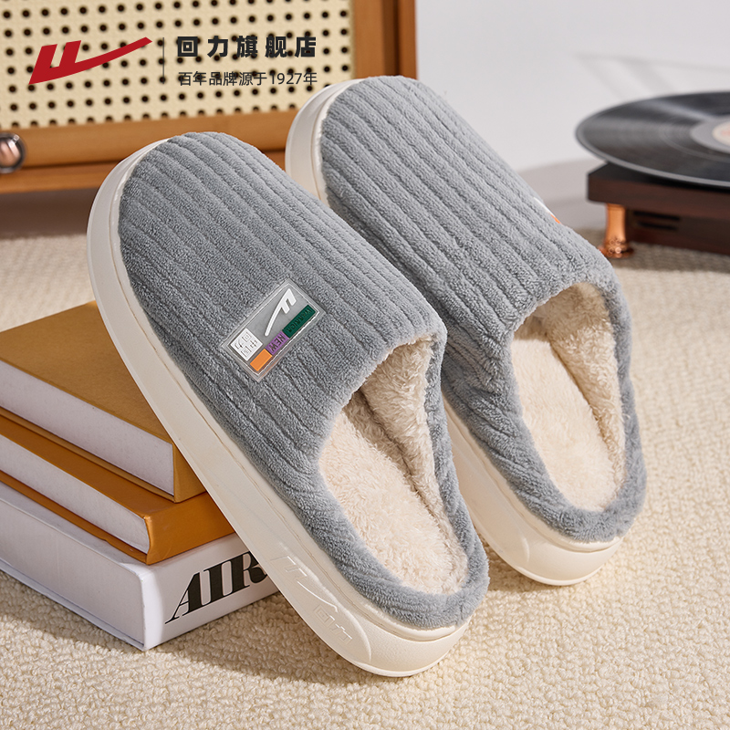 拖鞋 回力棉拖鞋 室内家居加绒厚底家用毛绒男士 秋冬季 子 男2025新款