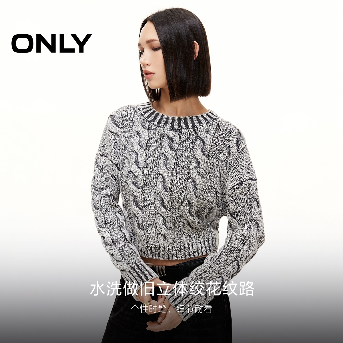 女 ONLY2025秋季 针织衫 亲肤柔软做旧圆领落肩短款 125113025 新款