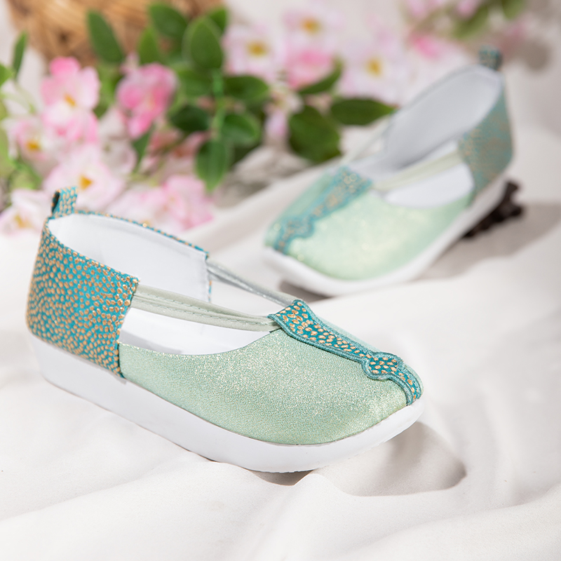 百搭翘头绣花鞋 原创增高汉服鞋 配古装 如意鞋 子 绿色复原款 淡雅春季