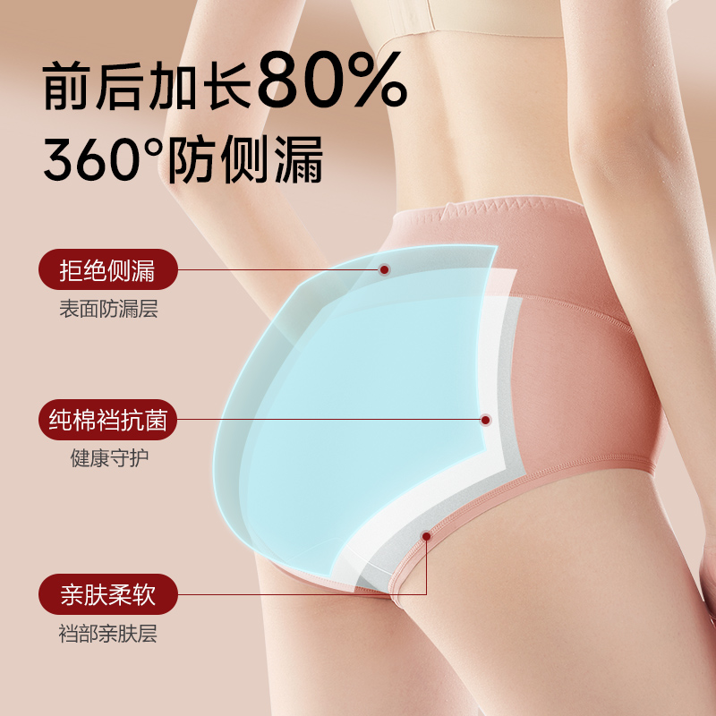 姨妈裤 纯棉抗菌月经期安全裤 专用裆部抑菌 加长女内裤 防漏生理裤