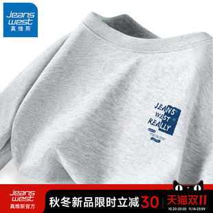 潮牌宽松体恤衫 GV真维斯灰色短袖 上衣男款 重磅纯棉半袖 T恤男夏季