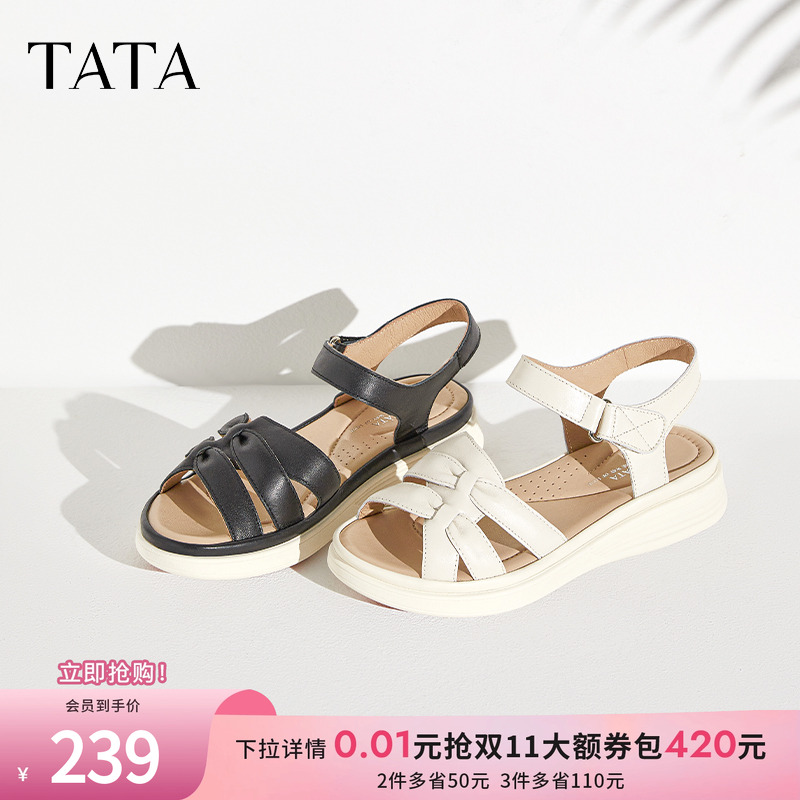 2024夏新款 Tata他她法式 气质羊皮一字带凉鞋 女款 YEX01BL4 厚底凉鞋