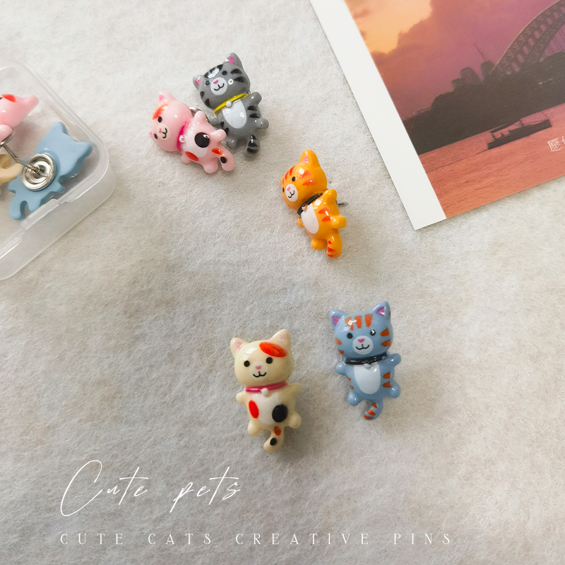 6个卡通图钉按钉留言板照片墙彩色软木板工字钉可爱按钉留言板软木板装 饰配件地图标记钉 饰毛毡板钉子小装