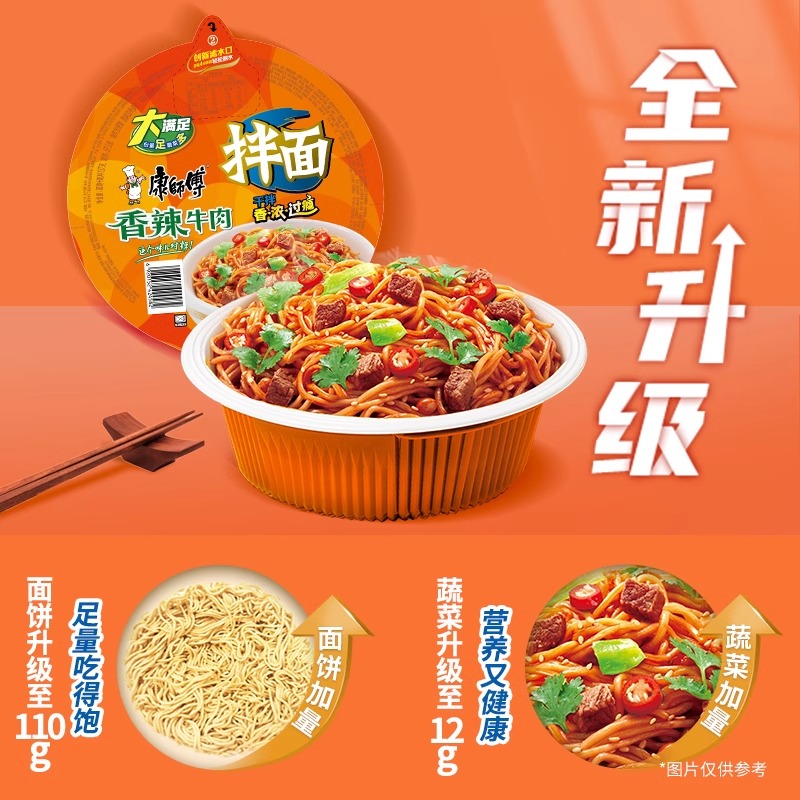 康师傅方便面干拌面红烧牛肉味碗装 泡面干拌面速食夜宵食品