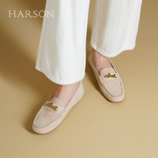 乐福鞋 哈森豆豆鞋 绒面软底一脚蹬孕妇单鞋 新款 HL249431 女秋季