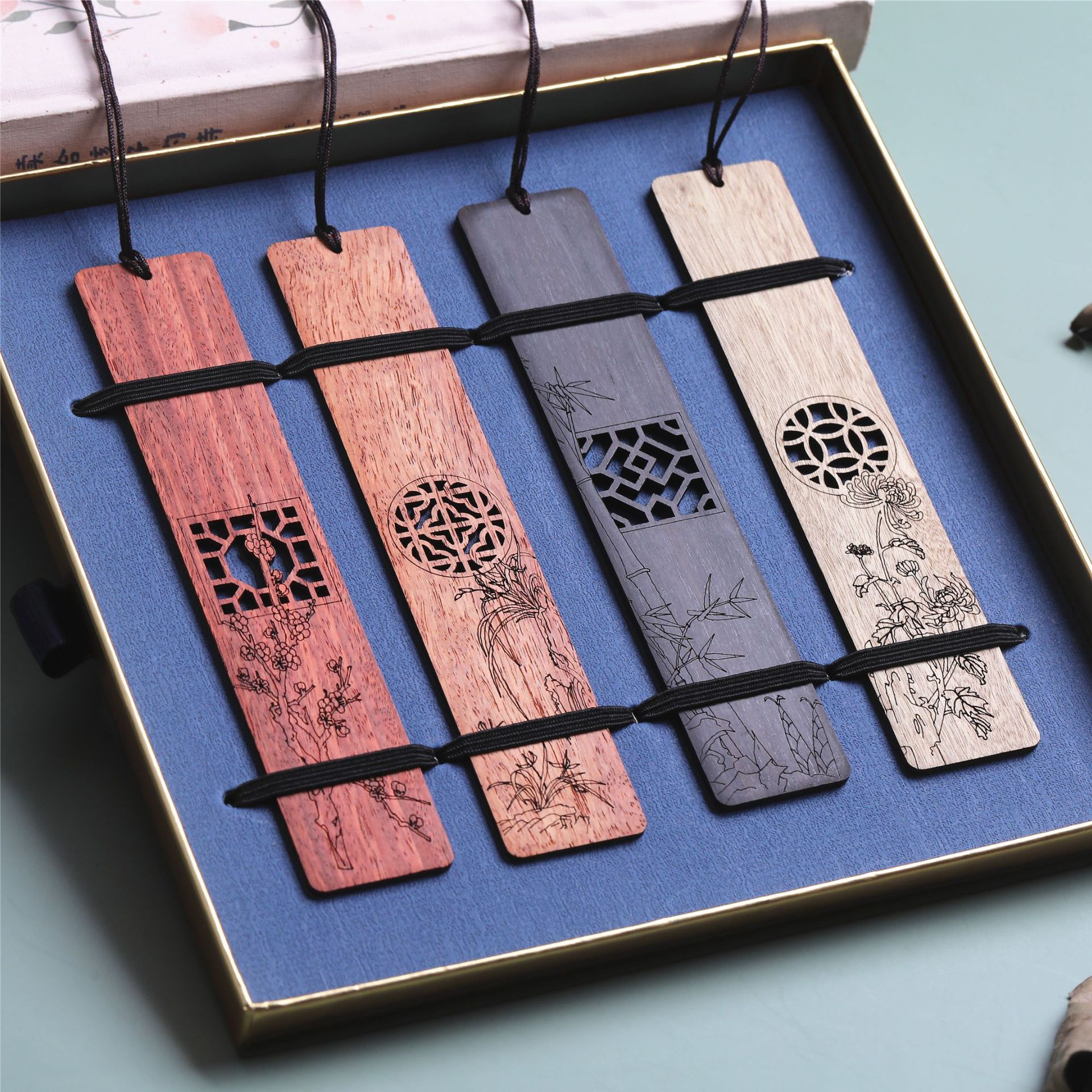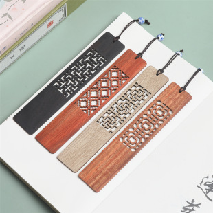 国风书签红木窗花雕刻镂空窗花书签公司景区文创礼品教师节礼物送老师木艺文创书签定制祝福礼物