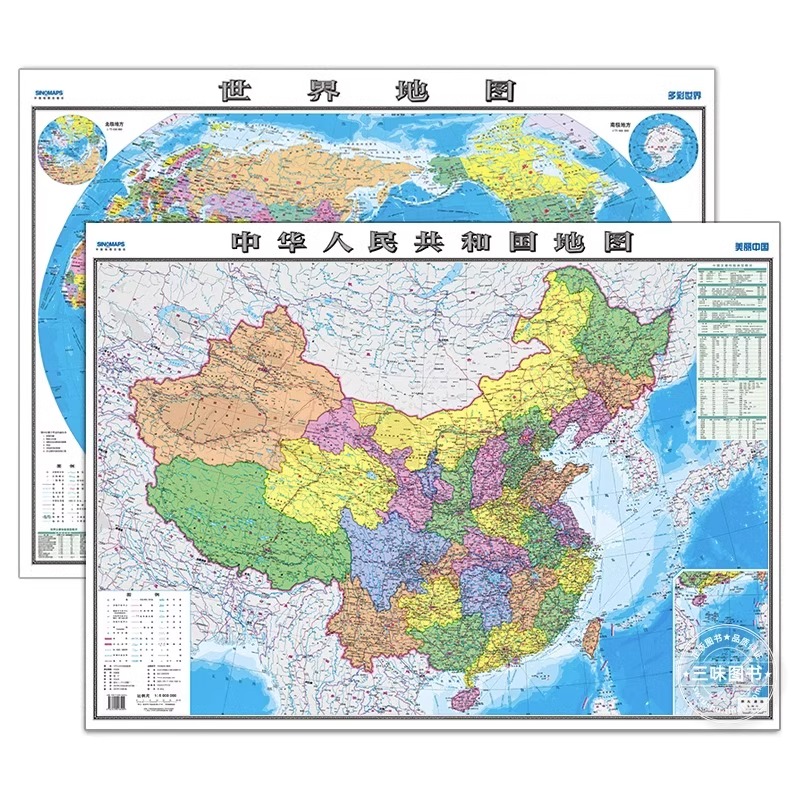 中国地图出版 新华书店正版 社 世界地图文教 图书籍 一般用中国地图 中国世界2合1地图