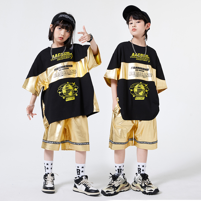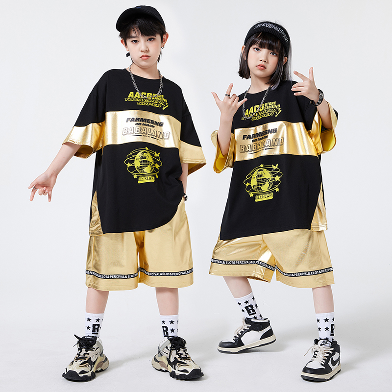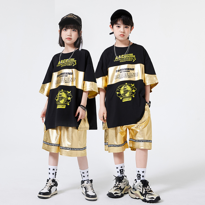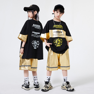 男童嘻哈街舞儿童潮服套装 潮牌表演服夏 女童hiphop酷帅演出服短袖