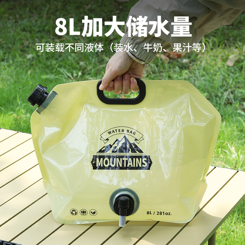 户外便携折叠水袋车载储水袋8L大容量食品级徒步露营用品装 备水桶