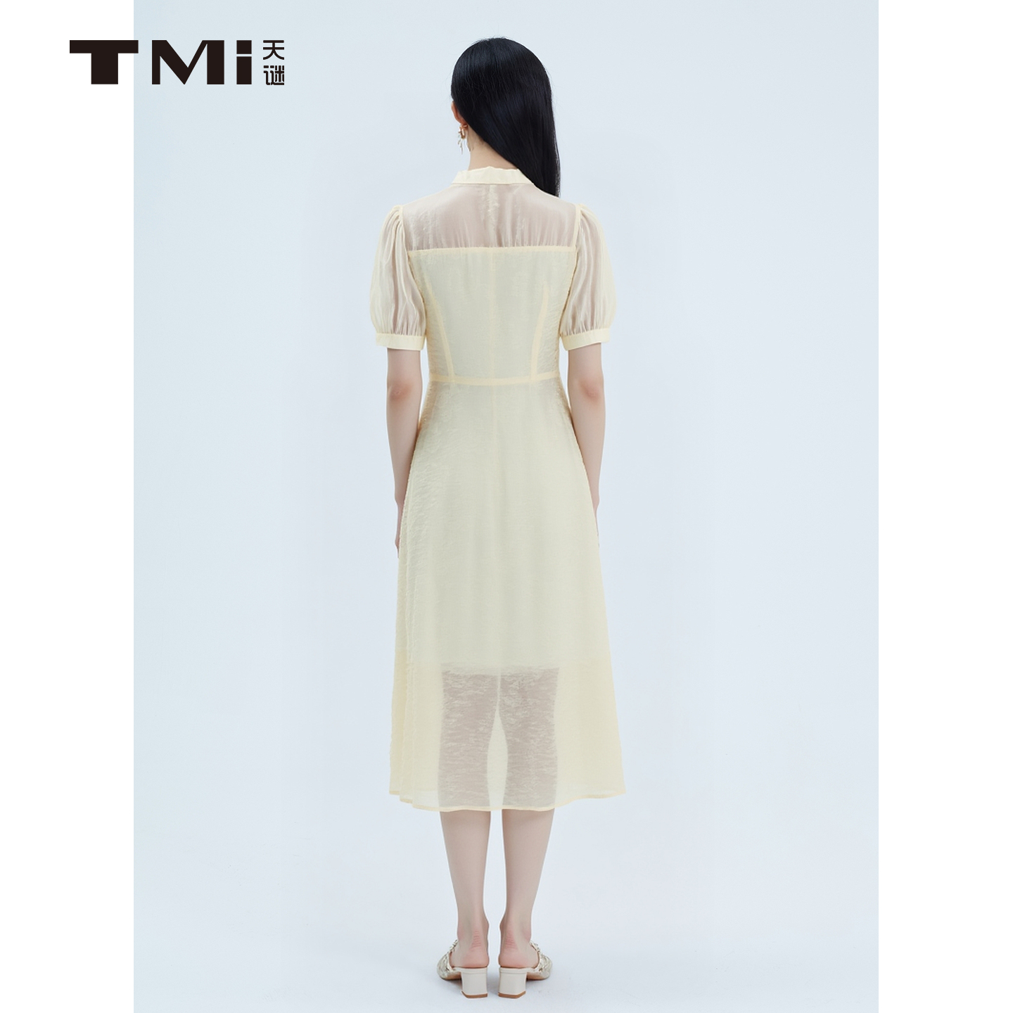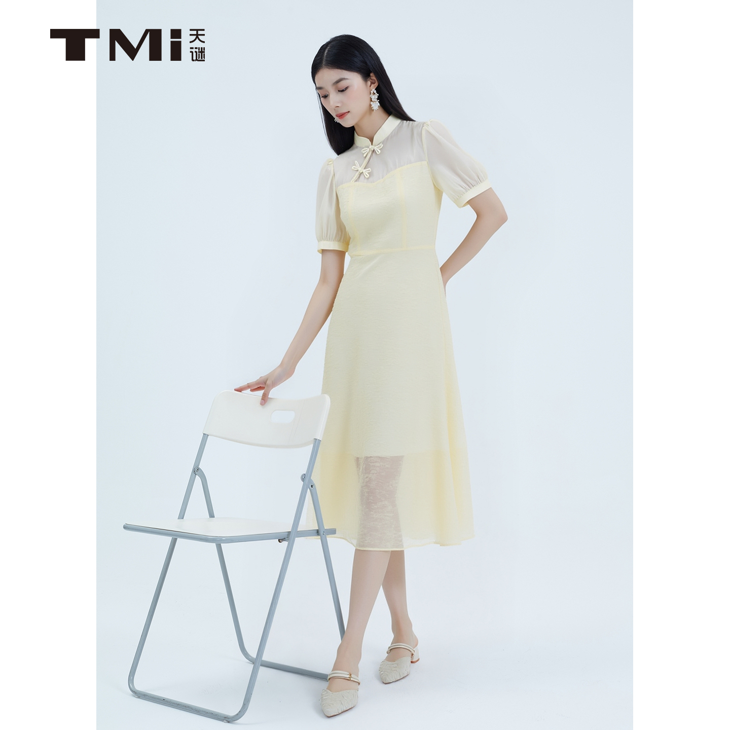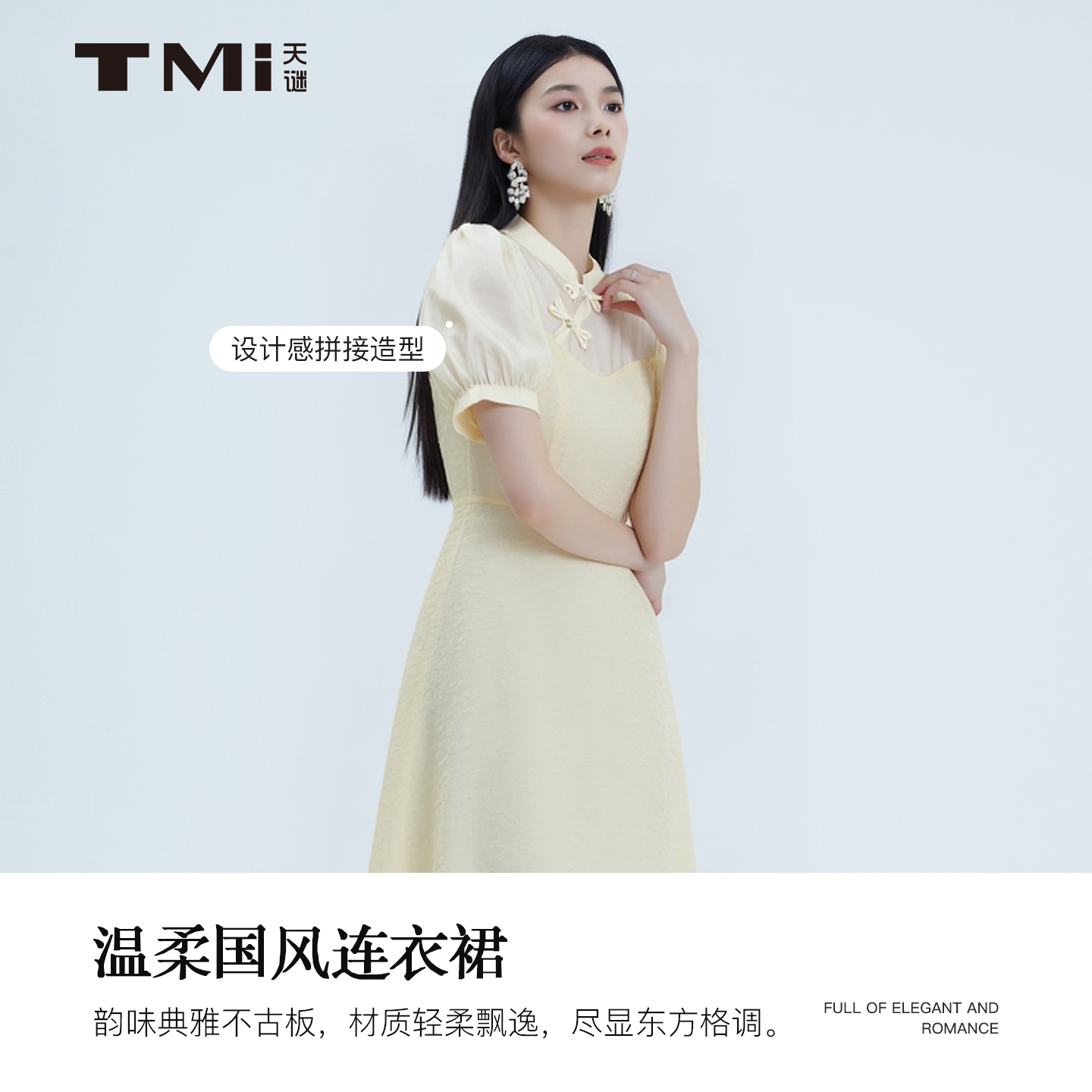 TMi242079 女装 天谜连衣裙国风中式 盘扣收腰百褶优雅长裙2024夏季