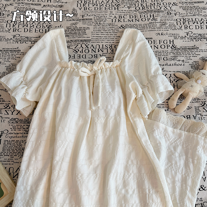 可爱睡衣家居服全棉女款 芬腾睡裙女士夏季 纯棉大码 短袖 连衣裙 薄款
