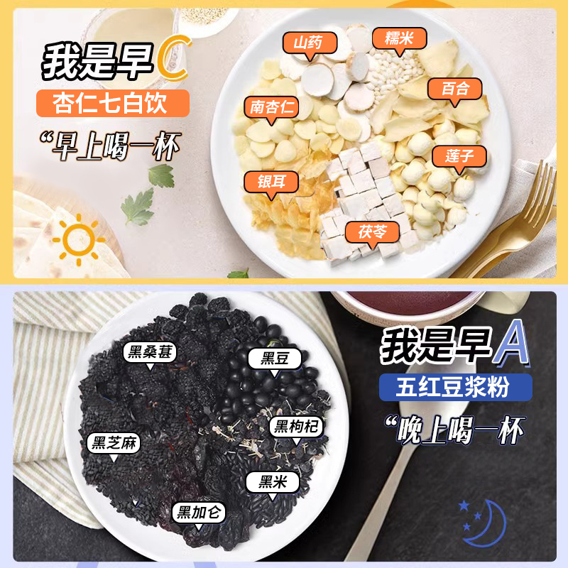 早C晚A五红豆浆粉杏仁七白饮红豆早餐代餐冲饮气血白白养生冲饮