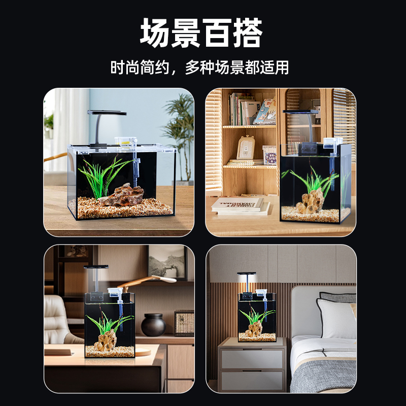 超白鱼缸小型客厅小鱼缸生态玻璃缸斗鱼金鱼缸家专用桌面造景全套