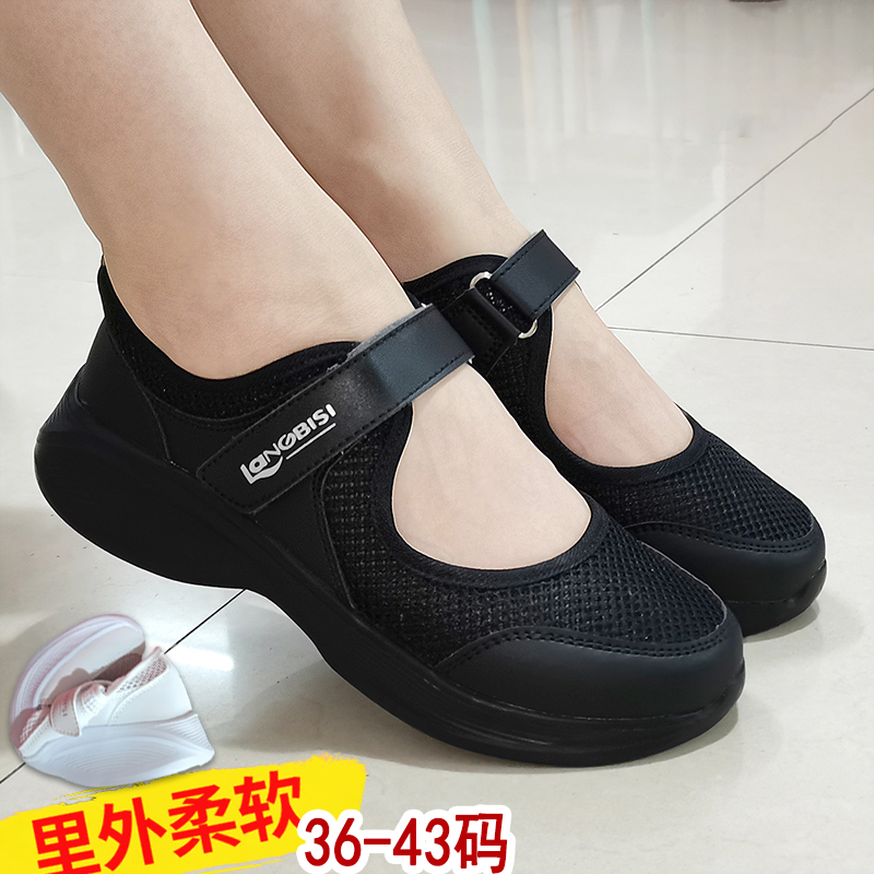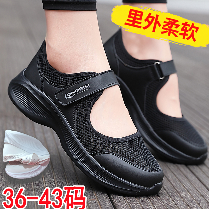 女鞋 凉鞋 妈妈透气软底黑色工作鞋 女士上班休闲鞋 子中老年大码 夏季