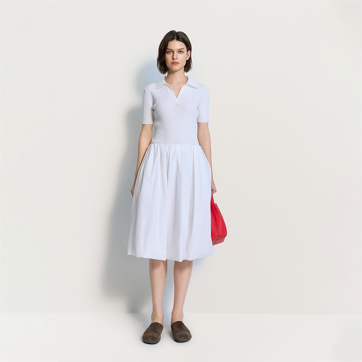 MOCO连衣裙2025秋新品 两件套POLO领含羊毛松紧腰A字裙MBE3DRST06