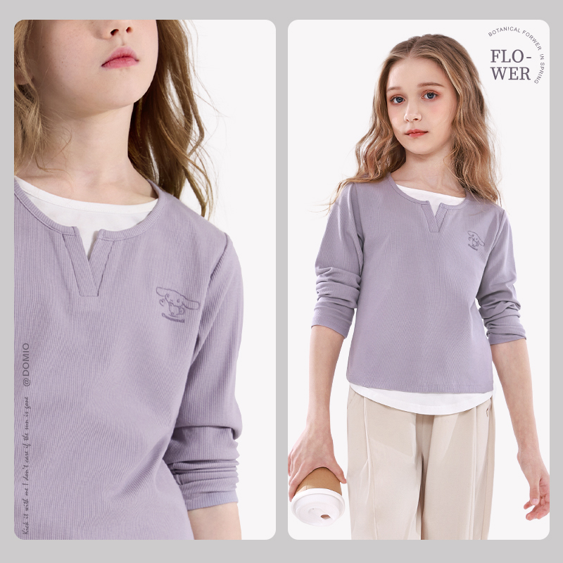 儿童长袖 2025新款 T恤女孩大童假两件上衣秋 春装 玉桂狗女童打底衫