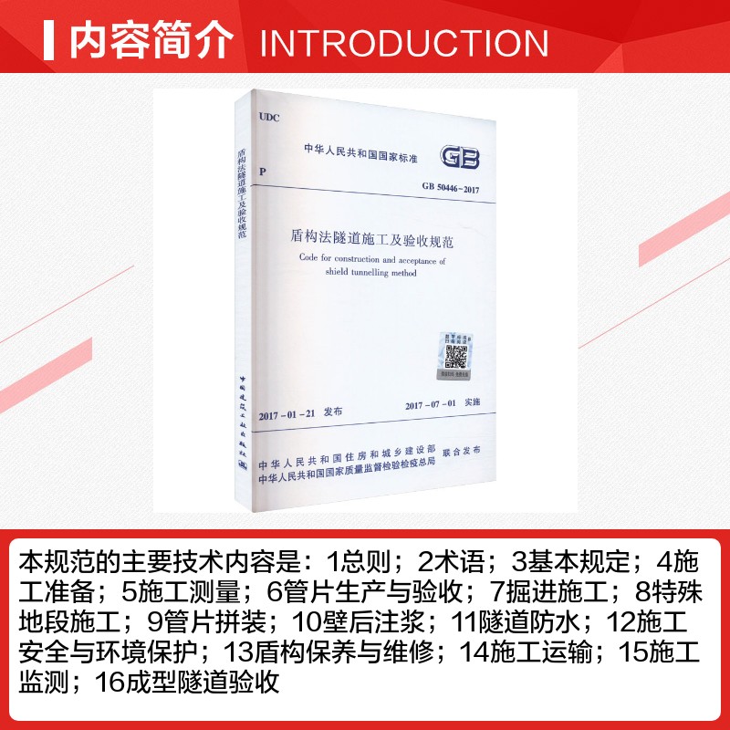 中华人民共和国住房和城乡建设部 盾构法隧道施工及验收规范 2017 50446 中华人民共和国国家质量监督检验检疫总局