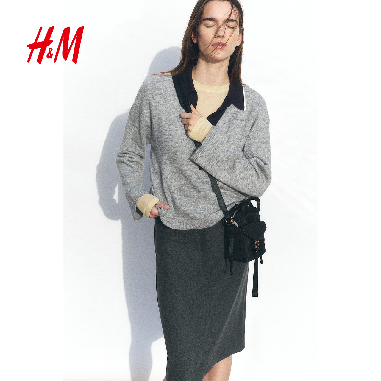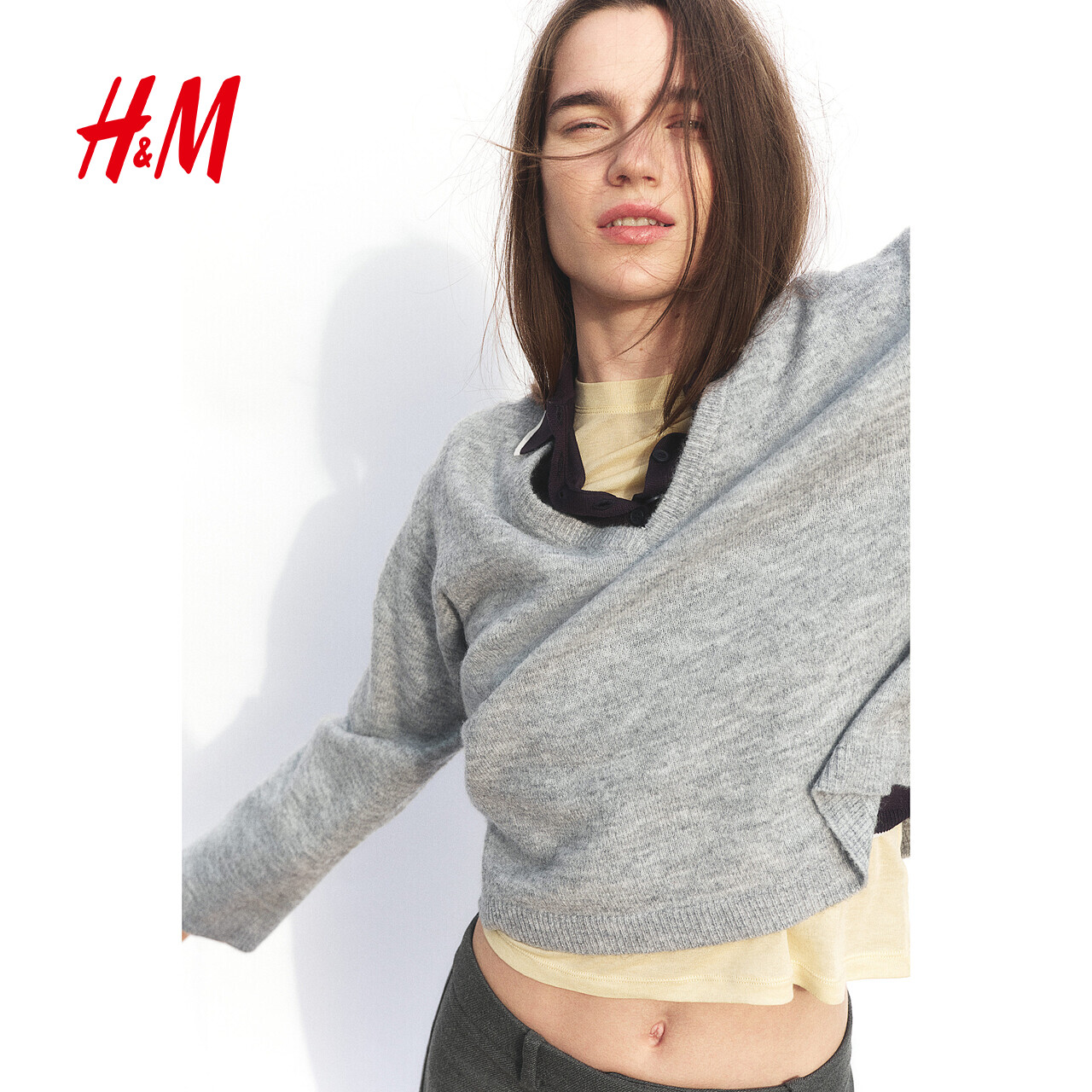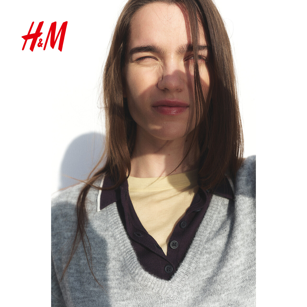1262846 细密针织V领套衫 HM2025年秋季 上新女装