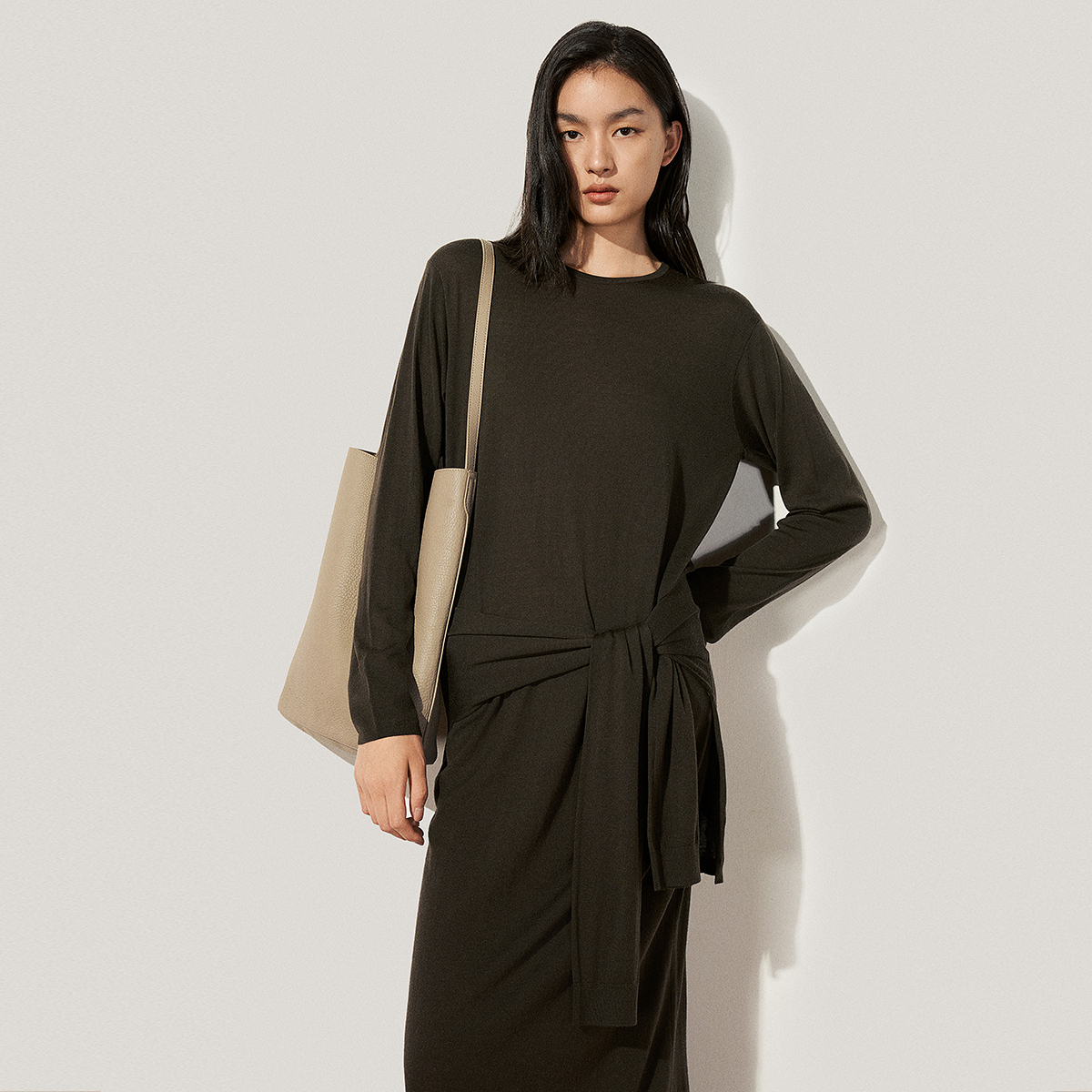 OCHIRLY欧时力澳大利亚100%羊毛毛织连衣裙两件套长款 25秋冬新品