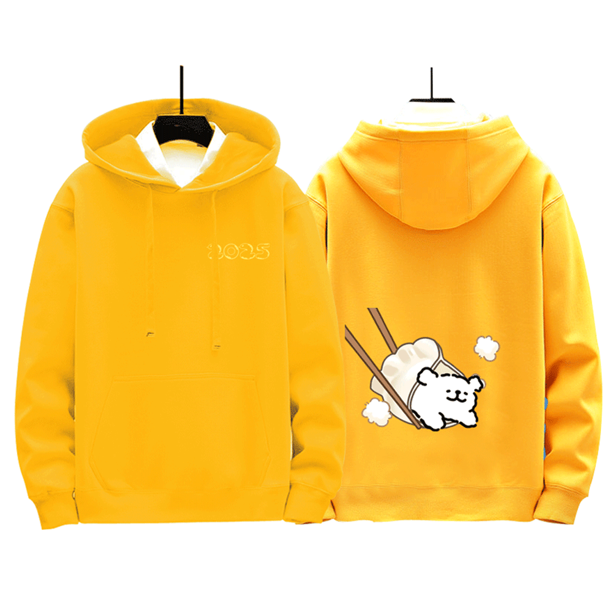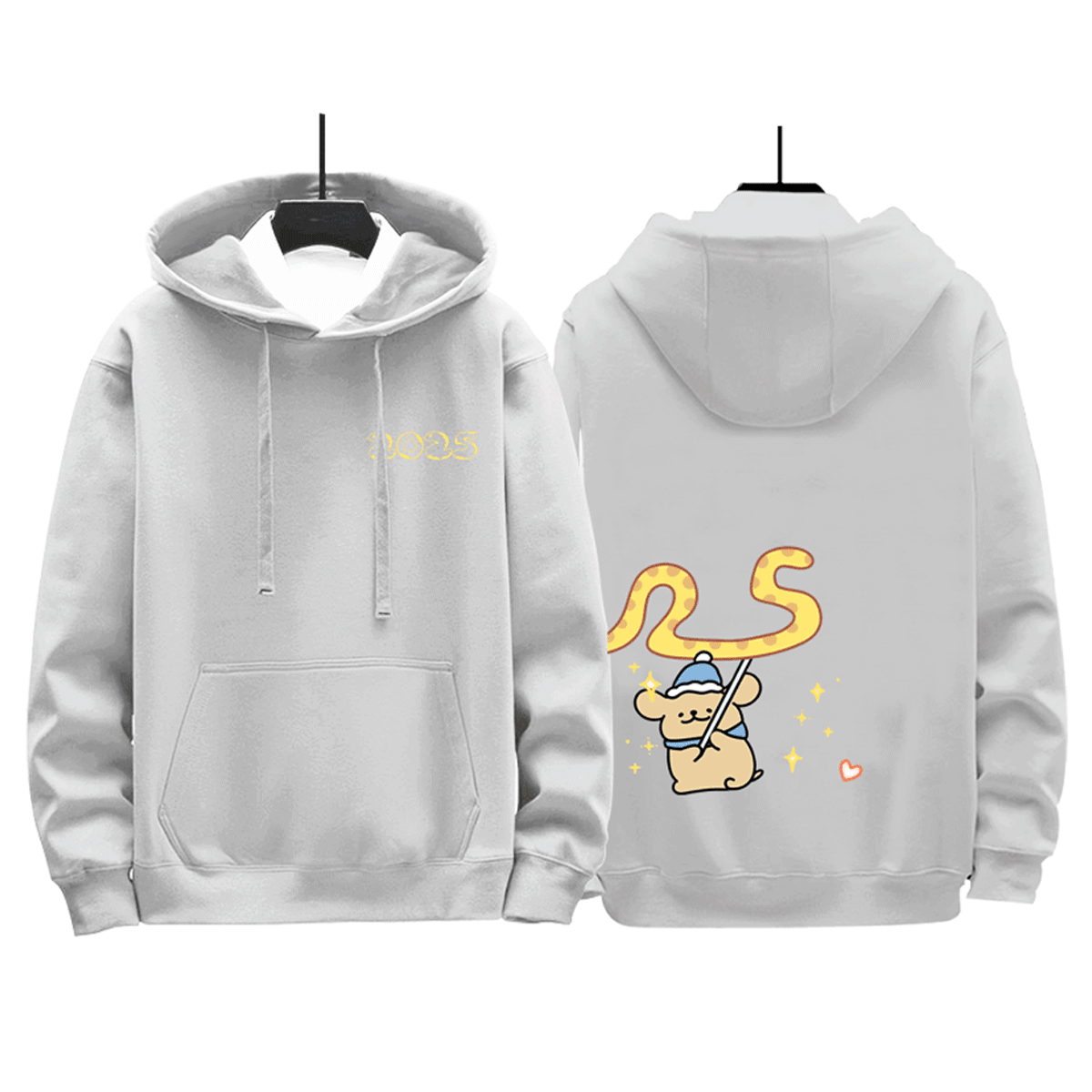 线条小狗过新年卡通印花男女四季 冬带帽卫衣 青年情侣可定制连帽衫