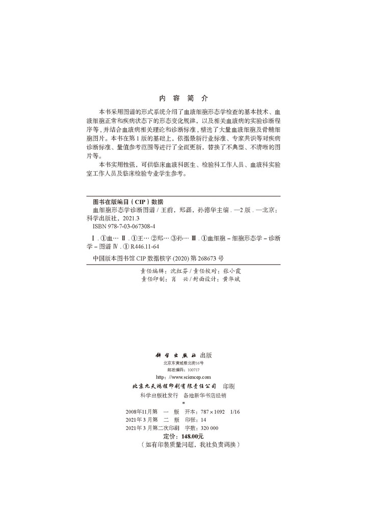 郑磊 血细胞形态学诊断图谱 王前 第2版 孙德华 医学血液检验技术研究书籍