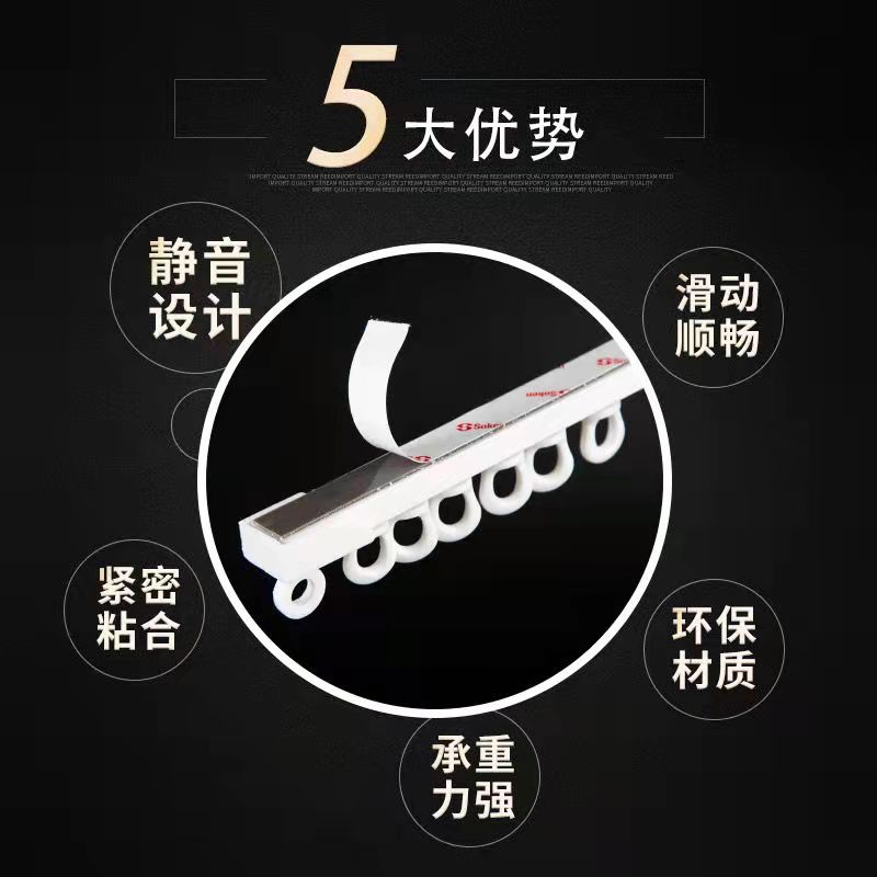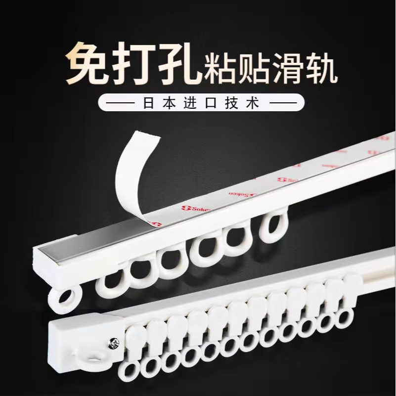 窗帘免打孔粘贴轨道超薄静音飘窗阳台自粘滑轨顶装 窗帘杆滑道 侧装