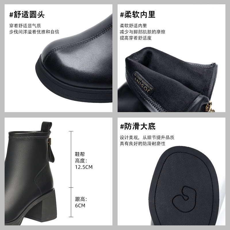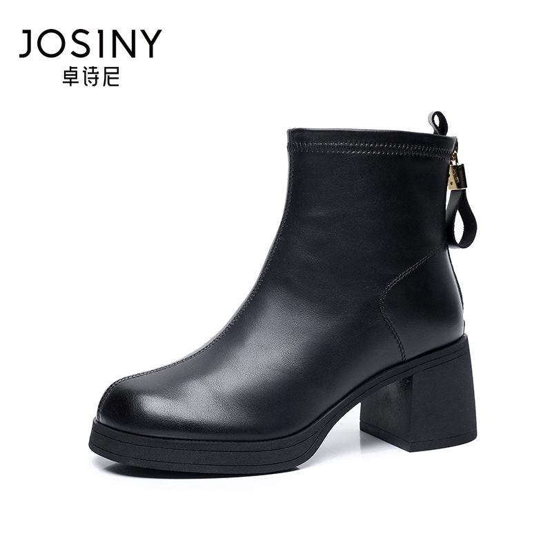 卓诗尼2025秋冬新款 高跟防水台马丁靴女百搭粗跟粗跟小踝靴短靴女