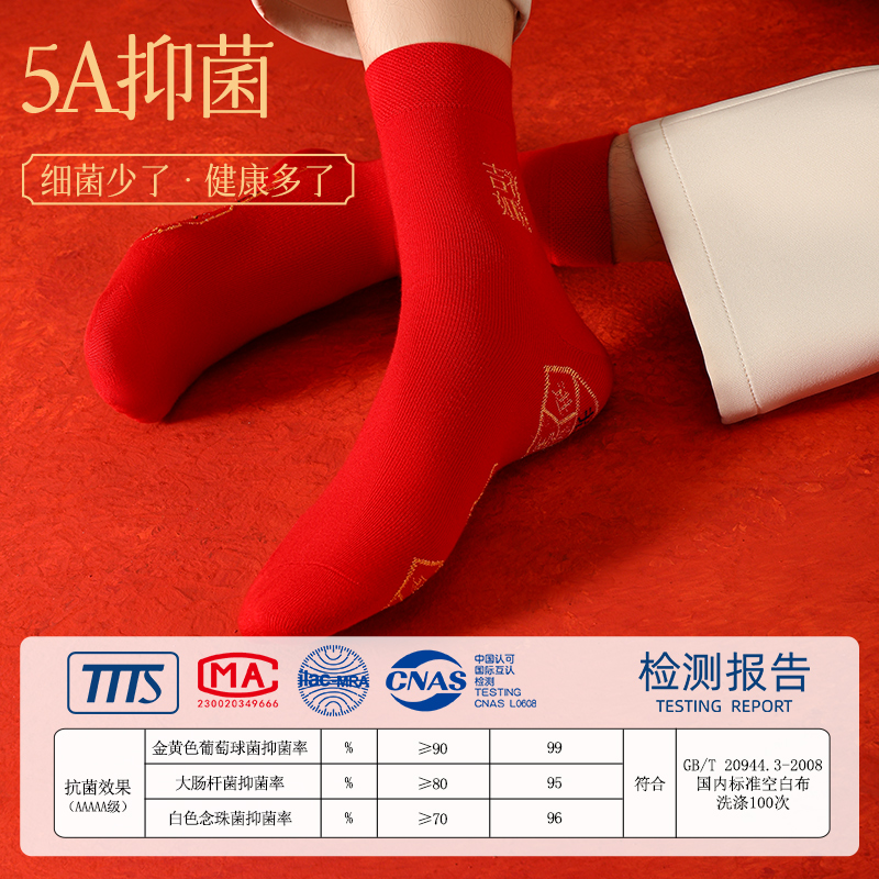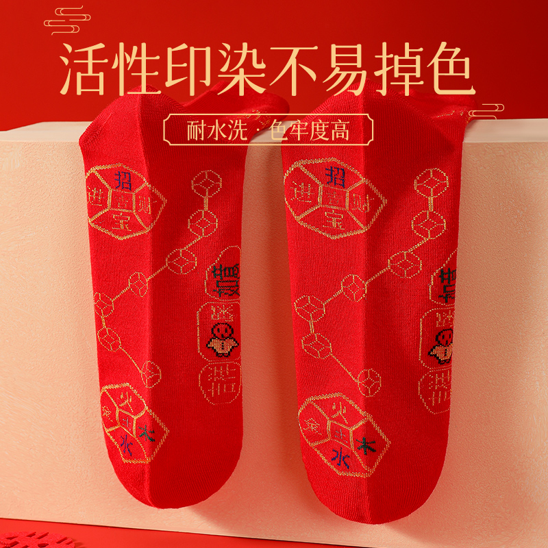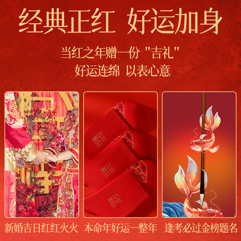 猫人本命年中筒袜子男士 纯棉大红色情侣结婚属蛇马年礼物七星喜袜