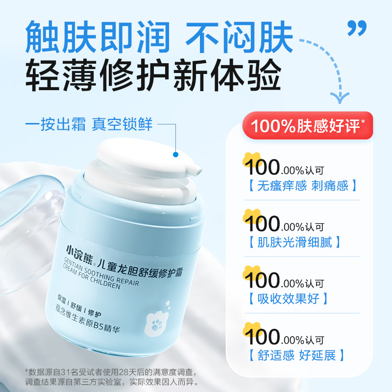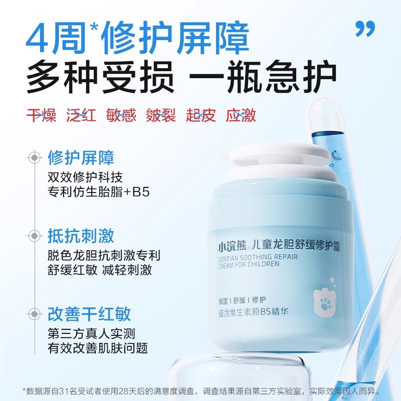 小浣熊儿童面霜龙胆B5修护舒缓男女童滋润补水秋冬保湿 婴儿身体乳