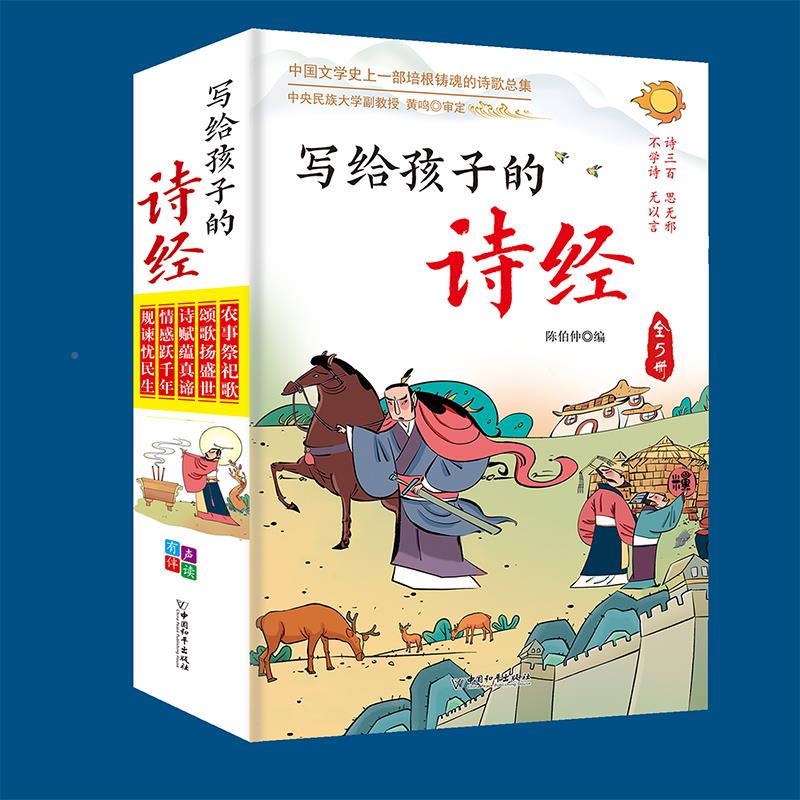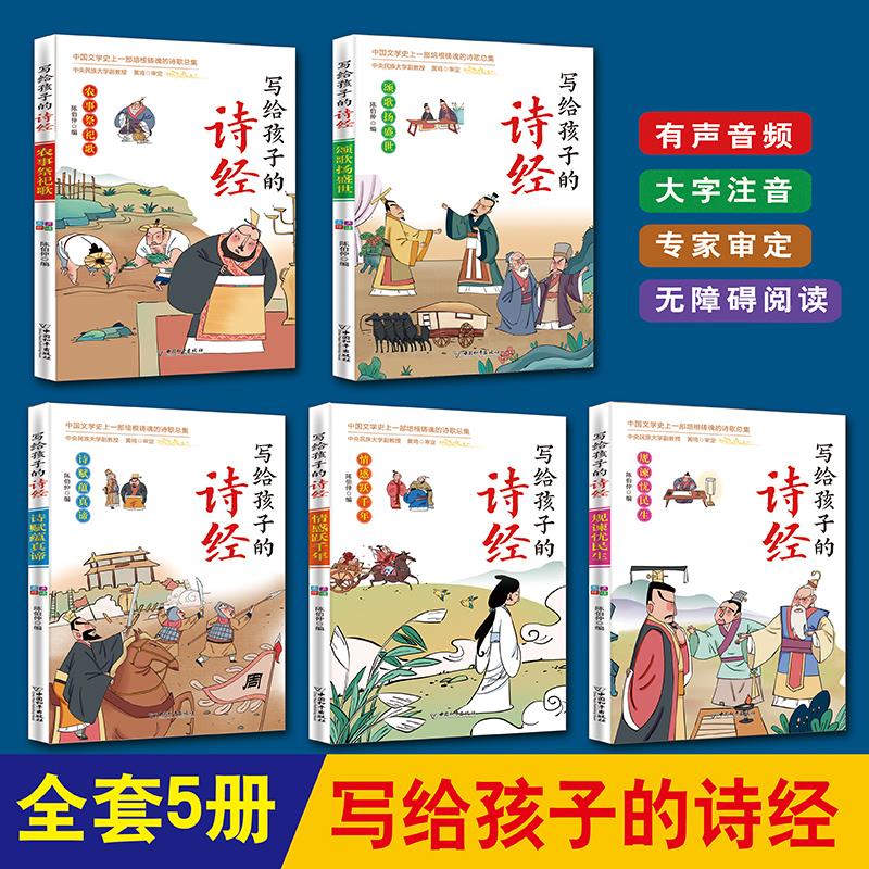 启蒙诗词鉴赏大全小学生课外阅读书籍 诗歌总集儿童国学经典 写给孩子 诗经彩图注音有声伴读全套5册中国文学史上一部培根铸魂