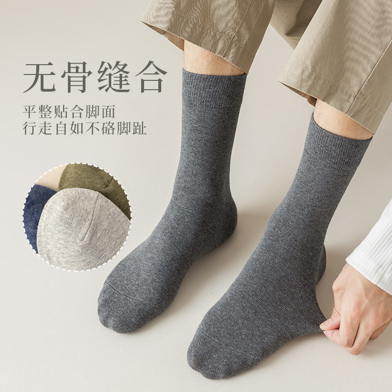 棉伙棉伴海藻袜舒适抗菌防臭男女商务运动纯色裸感中筒袜