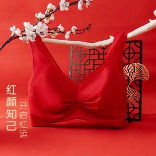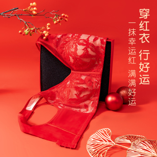 美佳美侬内衣女本命年无钢圈大胸显小聚拢结婚新娘红色文胸内衣
