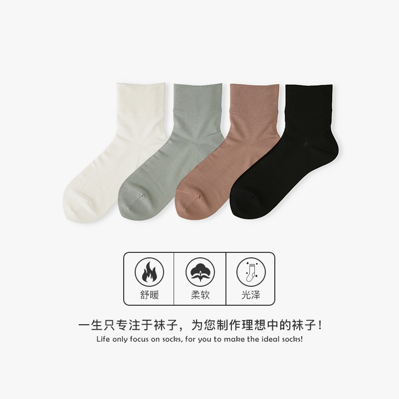Tabio无骨蚕丝袜子女高弹透气舒适商务女袜纯色百搭月子袜中筒袜