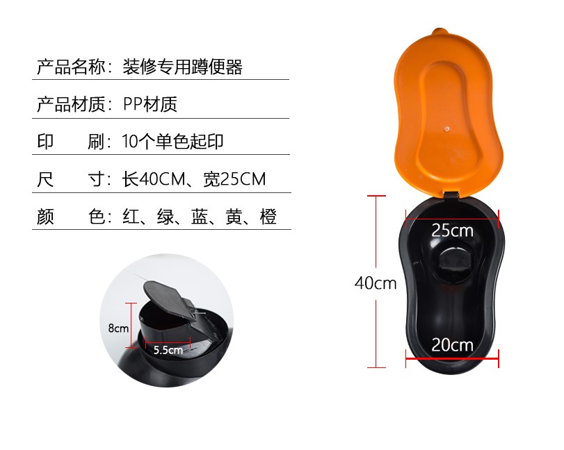 简易临时马桶装 修工人专用塑料蹲便器一次性工地施工用防臭可冲水