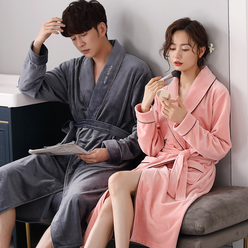 浴衣浴袍男女长款 海岛绒2025年新款 睡衣 薄款 情侣睡袍珊瑚绒秋冬季