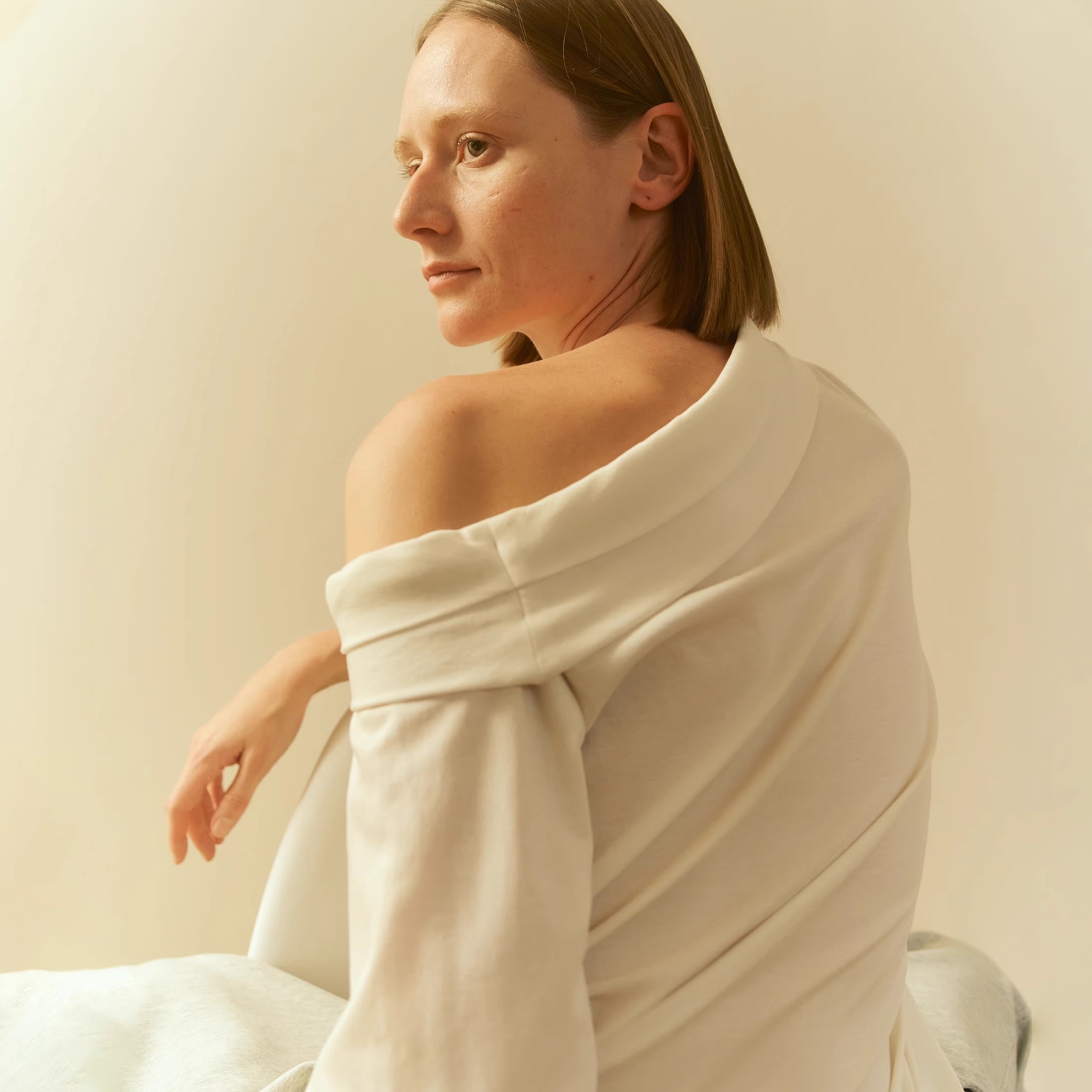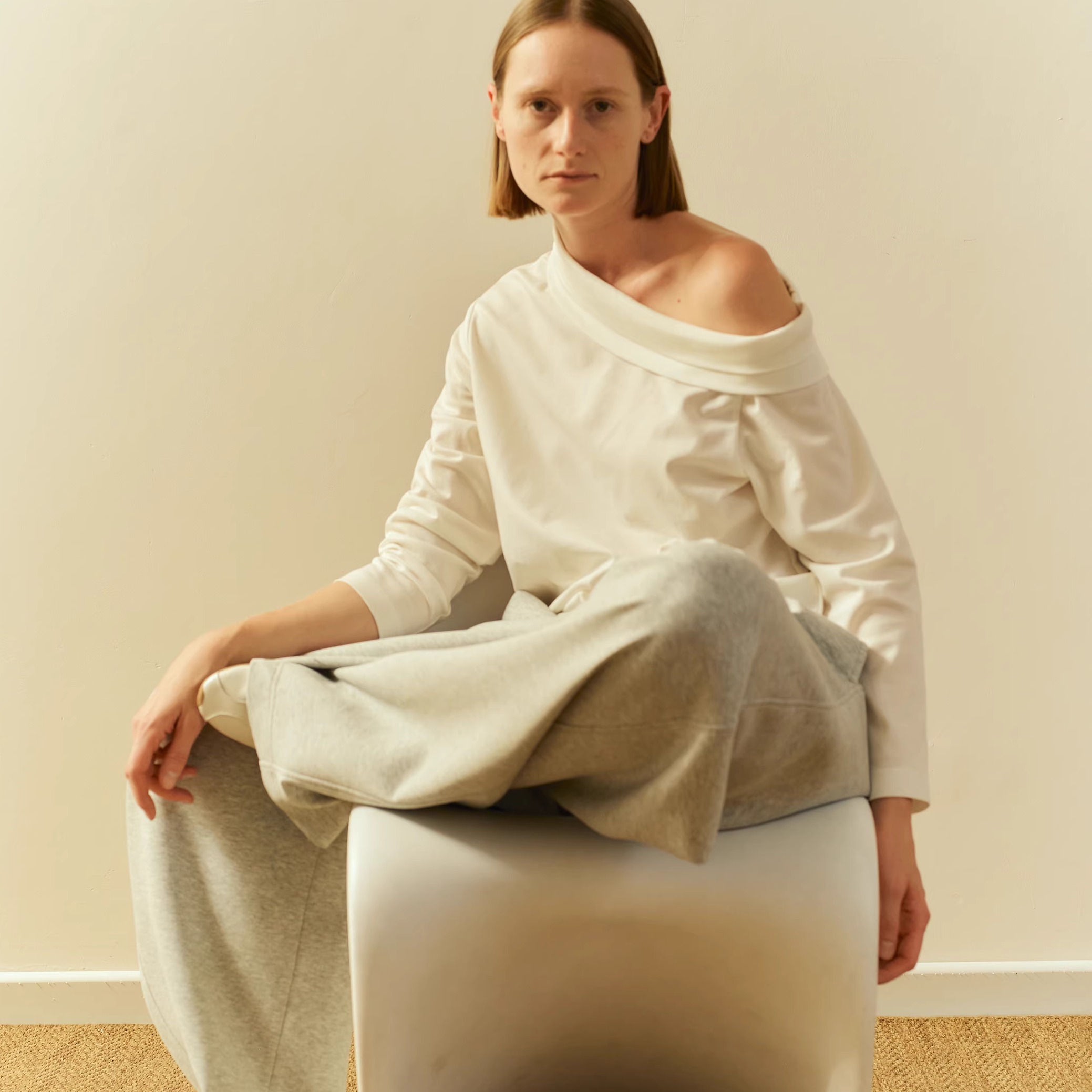 T恤女一字肩大领口纯色长袖 斜肩长袖 T恤女 时尚 PHISM25年春夏新款