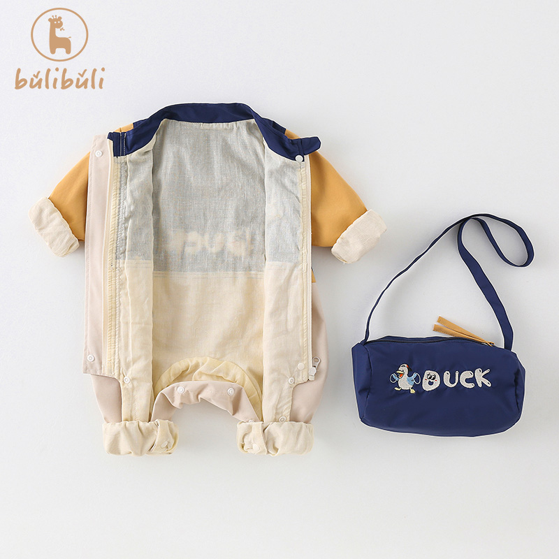 冲锋连体衣春季 韩版 男宝宝工装 2025新款 外出双层哈衣 婴儿衣服春装