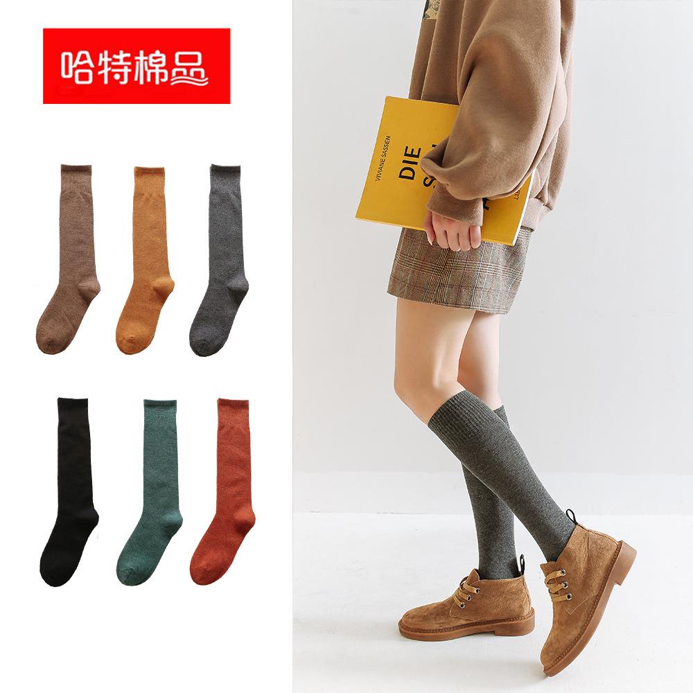 小腿袜子女纯棉春秋季 高筒咖色及膝袜半筒 压力袜套长筒全棉秋冬款