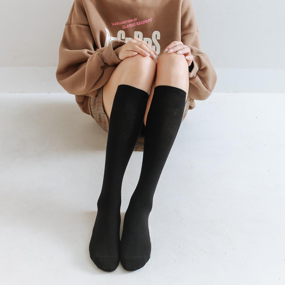 压力小腿袜女秋冬强压显瘦腿jk袜子黑色半截过膝中高筒韩版 长筒袜