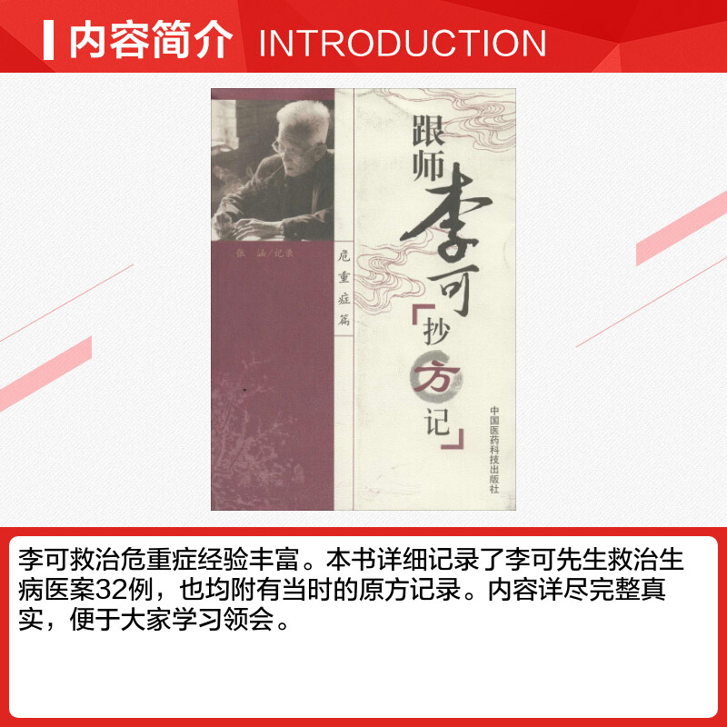 李可老中医书籍李可中医书籍全套之一 中医临床医案方剂药方验方 中国医药科技出版 跟师李可抄方记 正版 张涵记录 社 书籍 危重症篇