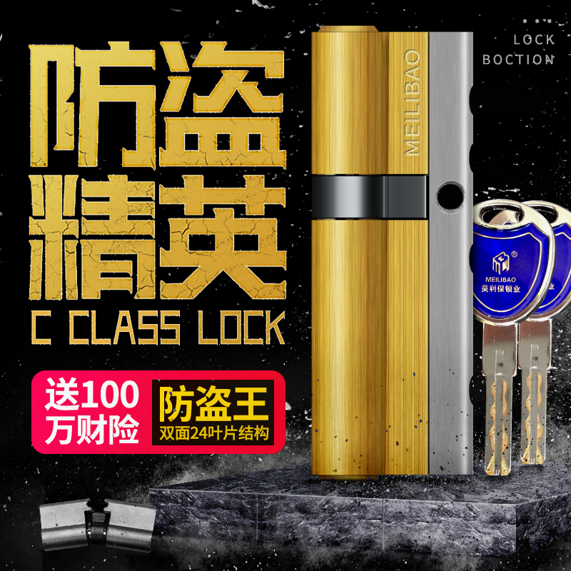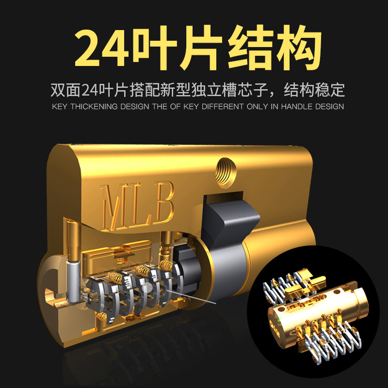 美利保旗舰店超B级C级叶片锁芯正品 双边柱防盗门锁芯防打断防暴力