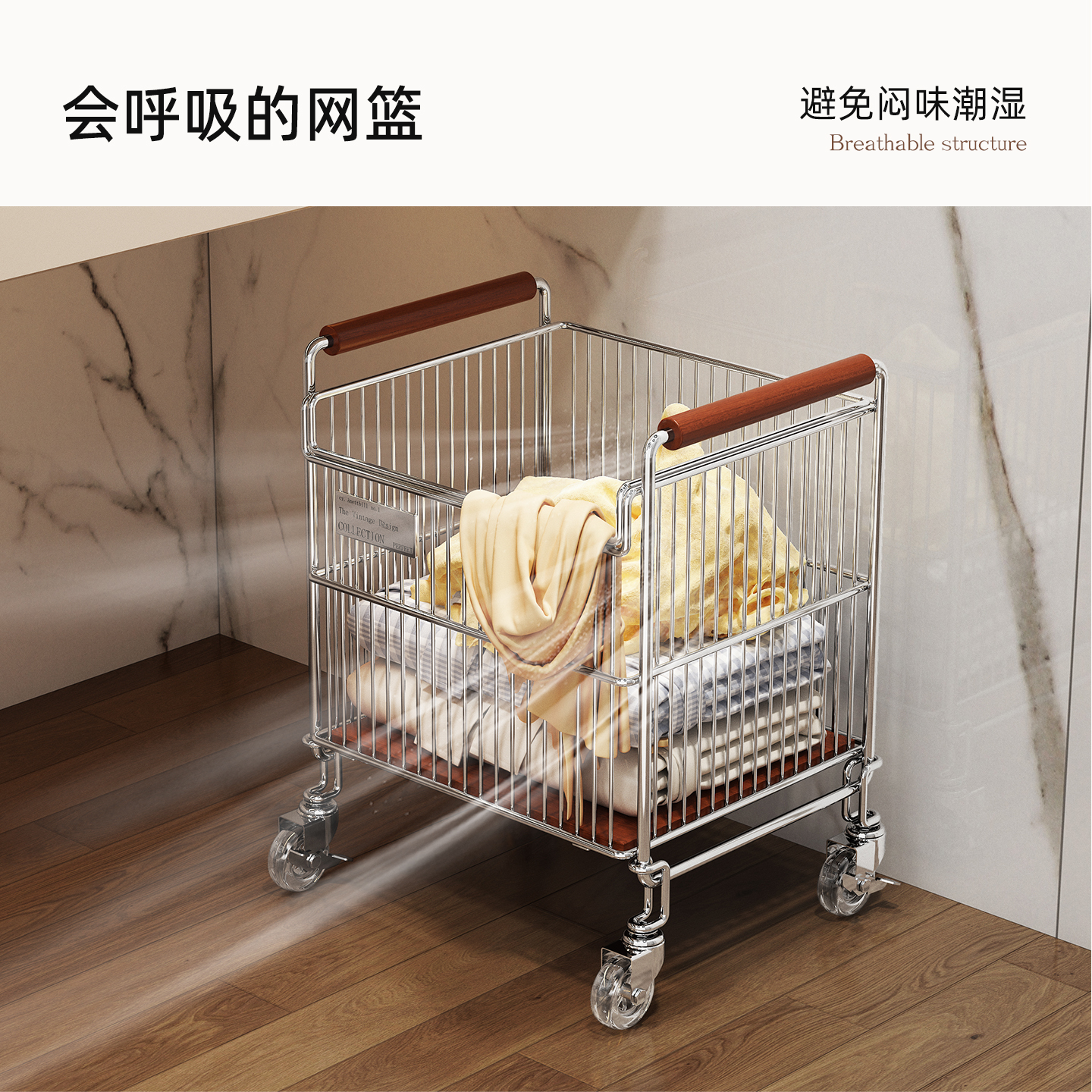 中古风可移动卫生间洗衣篮家用脏衣服收纳筐浴室柜下脏衣篮小推车