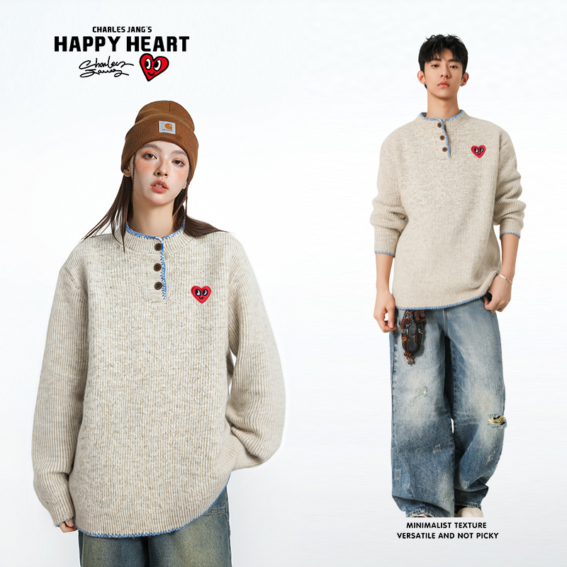 休闲针织衫 CHINISM赤尘 美式 毛衣男冬季 外套 灰色简约立领拉链开衫