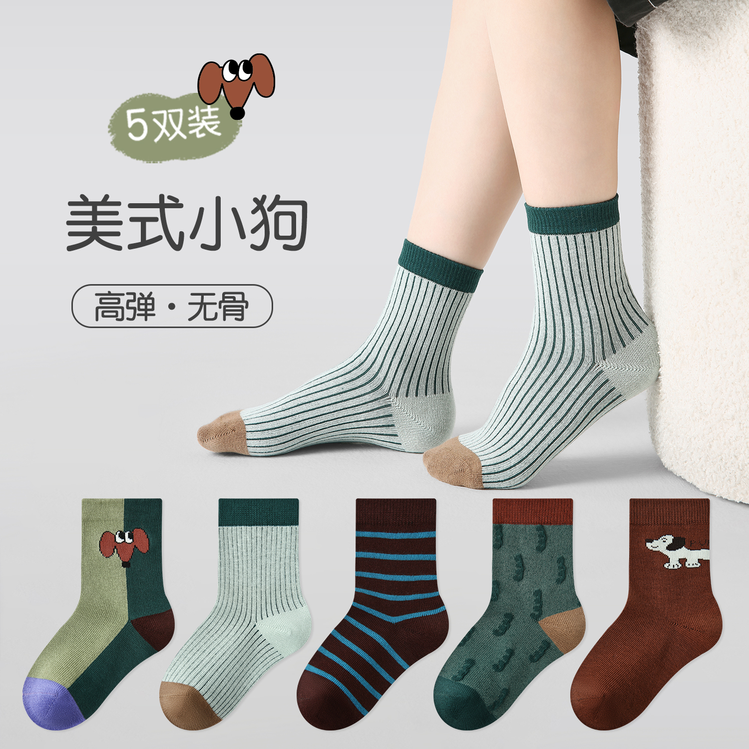 儿童袜子春秋纯棉韩版 宝宝无骨袜 撞色卡通中筒袜中大童男童秋冬季